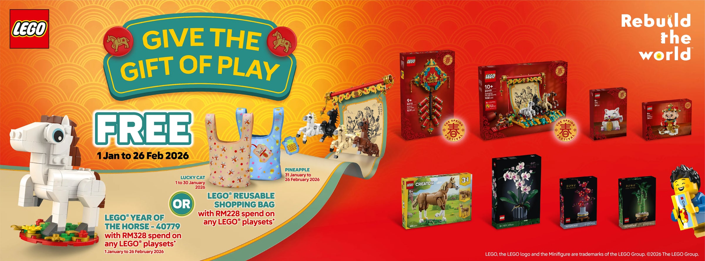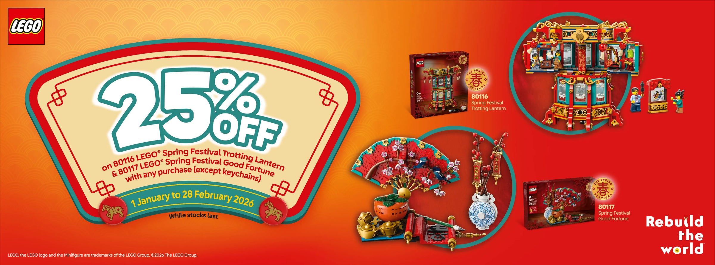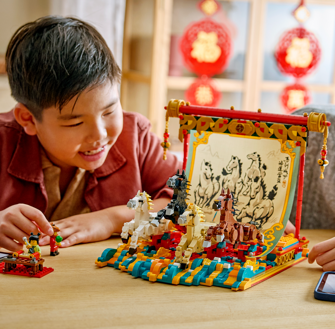 - 2 minifigures (1 of them is in Year of the Horse costume)