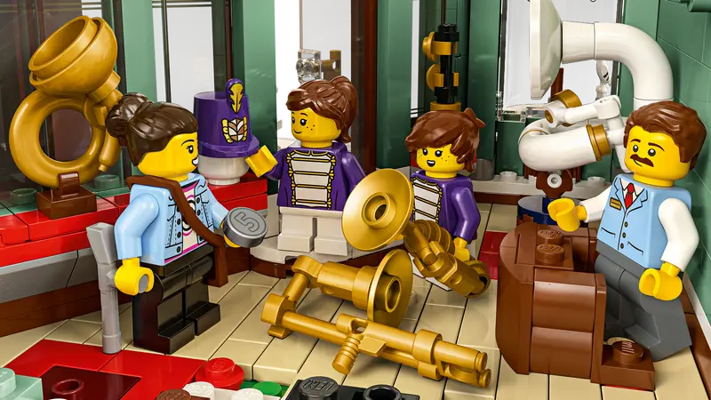DETAILED COLLECTIBLE LEGO® SET – Features include a music shop with marching band instruments, a furniture store and a furnished apartment, plus a roof garden and a central alleyway