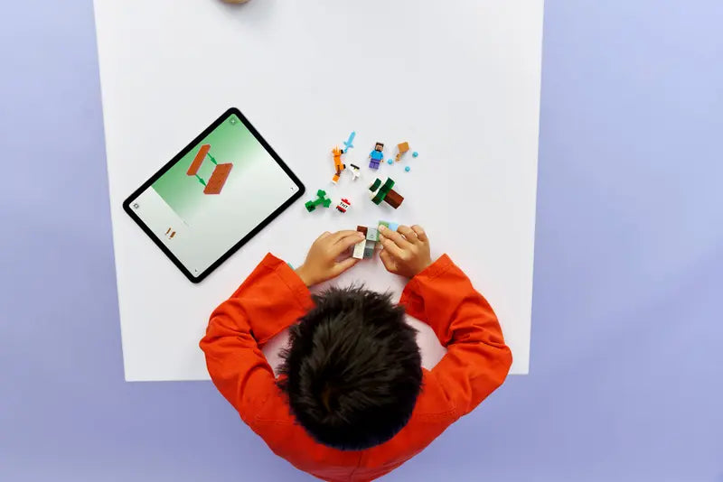Take Minecraft® players' gaming to the next level with Steve’s Taiga Adventure (21583), a collectible building set for boys and girls 6 years old and up. This small LEGO® set is bursting with battle action, treasure hunting and explosive fun for kids to explore with a Steve minifigure, plus a Creeper™, fox and a baby bunny LEGO figures. Kids join one of the game's heroes, Steve, as he mines diamonds in the Minecraft taiga biome, with its distinctive spruce tree, snow and taiga grass. TNT and an explosion function blast the rocks apart to reveal diamonds, which can be stored in a treasure chest. There’s also a hostile Creeper to fend off using Steve’s diamond sword. This set makes a great gift idea for Minecraft players, LEGO builders andfans of gaming decor. And, with the LEGO Builder app, kids can build with confidence – zoom, rotate in 3D and track progress with easy-to-follow digital instructions. Set contains 79 pieces.