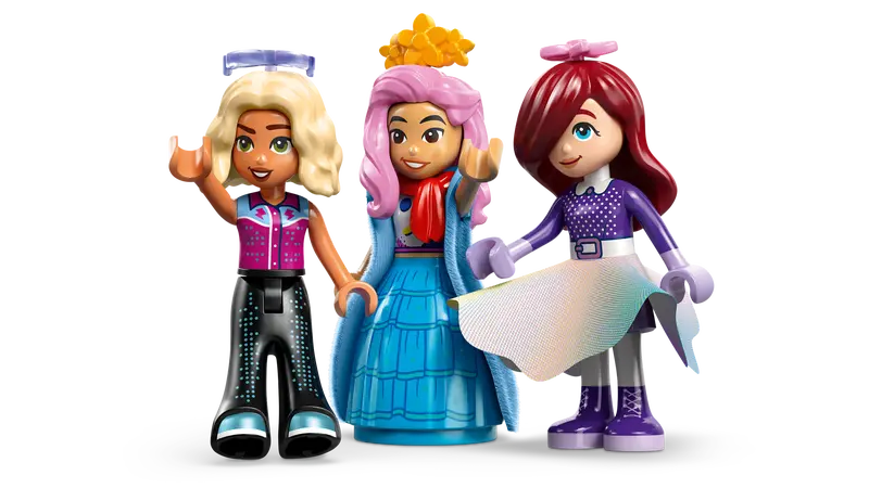 3 LEGO® FRIENDS CHARACTERS – This fashion and dress up toy comes with 3 minidolls – Paisley, Liann and Nova – to style at the vanity table, then place on the rotating platform to reveal the outfit