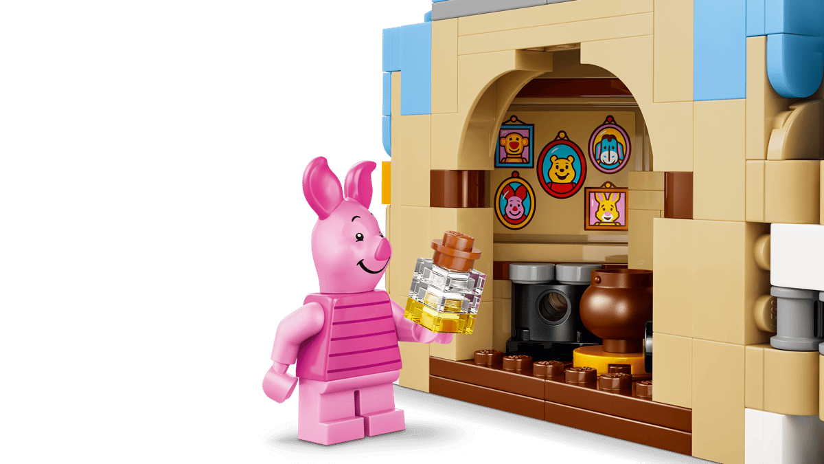 DIMENSIONS – Piglet from Disney’s Winnie the Pooh movie in this 544-piece LEGO® ǀ Disney display building set stands over 6.5 in. (17 cm) high, 3 in. (8 cm) wide and 2.5 in. (7 cm) deep