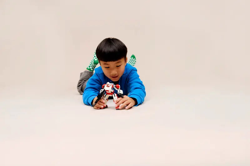 PLAY AND DISPLAY – Pose the mech’s hands, arms, legs and feet, target enemies with its large, stud-shooting blaster rifle, and display the mech between playtime adventures
