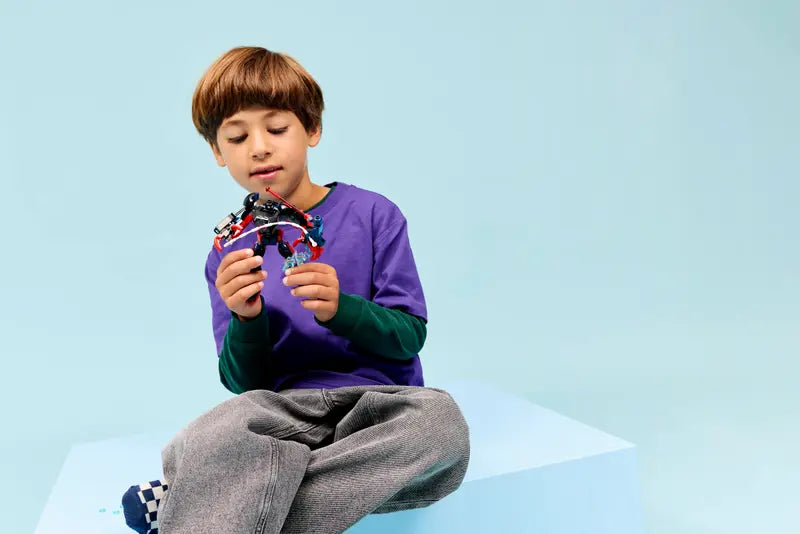 ACCESSORIES FOR ACTION – A powerful 3-stud shooter, web rope and razor web power blasts attached to the Miles Morales mech’s arms, bring the building toy and minifigures to life in kids’ imaginations